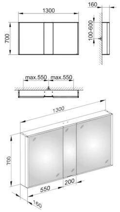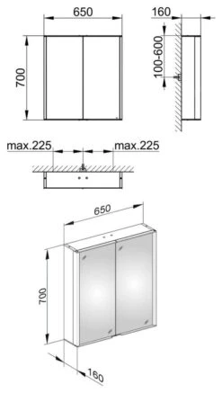 Keuco Royal Match – Spiegelschrank Mit LED-Beleuchtung, 650x700x160 Mm, Silber Eloxiert 12801171311