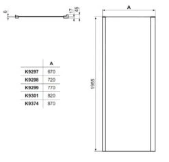 Ideal Standard Connect 2 – Feste Seitenwand 700 Mm, Schwarz/ Glasklar K9297V3