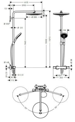 Hansgrohe Rainfinity – Brausegarnitur Showerpipe 360, 1jet, Verchromt 26842000