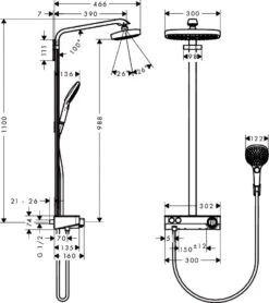 Hansgrohe Rainmaker Select – Duschsäule Showerpipe 460 2jet, Weiß / Verchromt 27028400