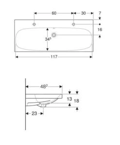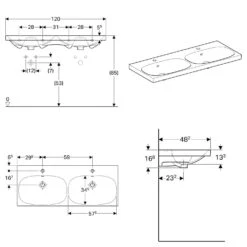 Geberit Acanto – Doppelwaschtisch 1200×482 Mm, Mit 2 Hahnlöcher, Mit Überlauf, Weiß 500.627.01.2