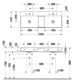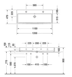 Duravit Vero – Doppelwaschtisch 1200×470 Mm, 2 Hahnlöchern, Mit WonderGliss, Alpinweiß 04541200261