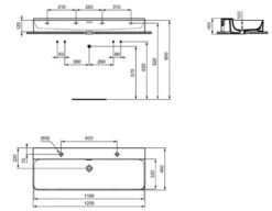 Ideal Standard Conca Ceram – Waschbecken 1200×450 Mm, Mit Überlauf, Hahnlöcher, Weiß T380301
