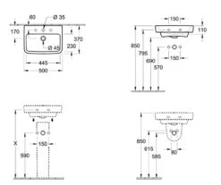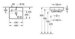 Villeroy & Boch O.novo – Handwaschbecken 500×370 Mm, Mit Überlauf, 1 Hahnloch, Alpinweiß 43445001