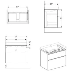 - Abmessungen des Schrankes: 74 x 62 x 47,7 cm (BxHxT)