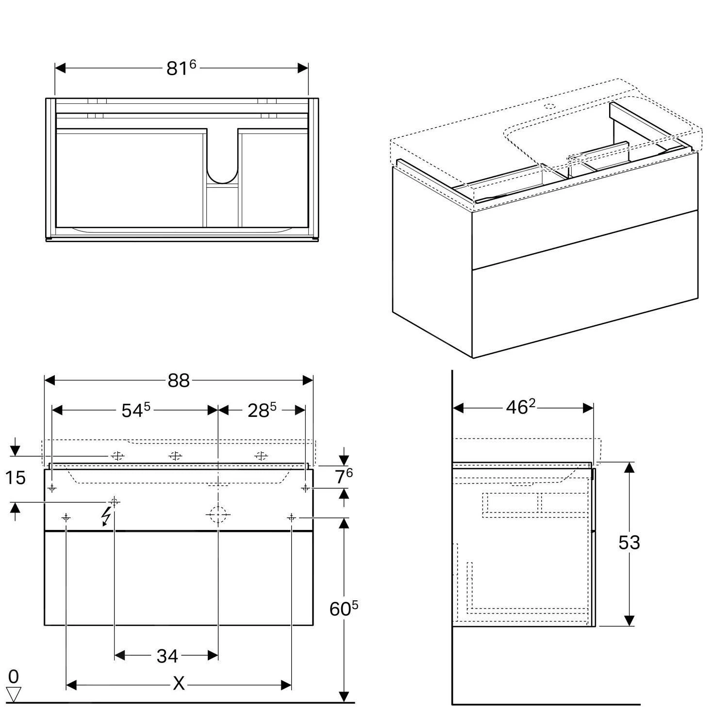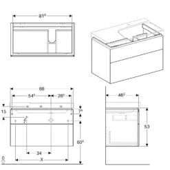 - Abmessungen des Schrankes: 88 x 53 x 46,2 cm (BxHxT)