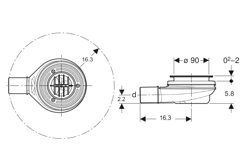 - für Duschtassen mit Ventilöffnung Ø90 mm