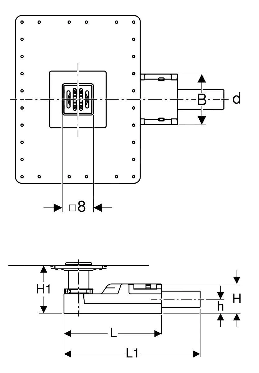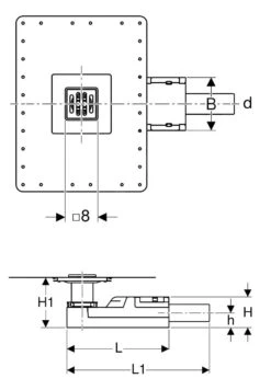 - Abmessungen: B = 130 mm, H = 65 mm, H1 = 65-175 mm, h 32 mm