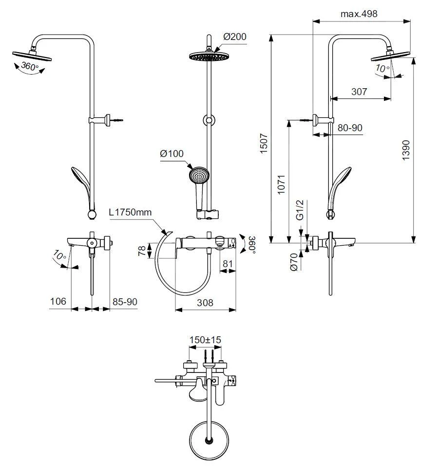 - manueller 3-Wege-Umschalter in der Armatur integriert