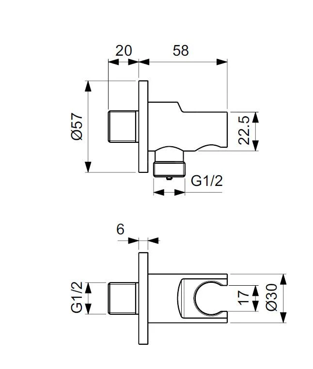Halterung der Handbrause fest mit Anschluss für die Dusche