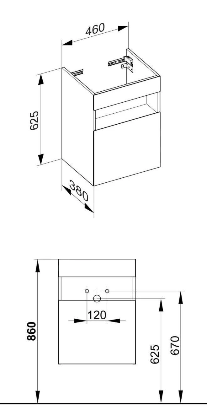 Waschtisch-Unterschrank, rechte Variante, inkl. Siphon