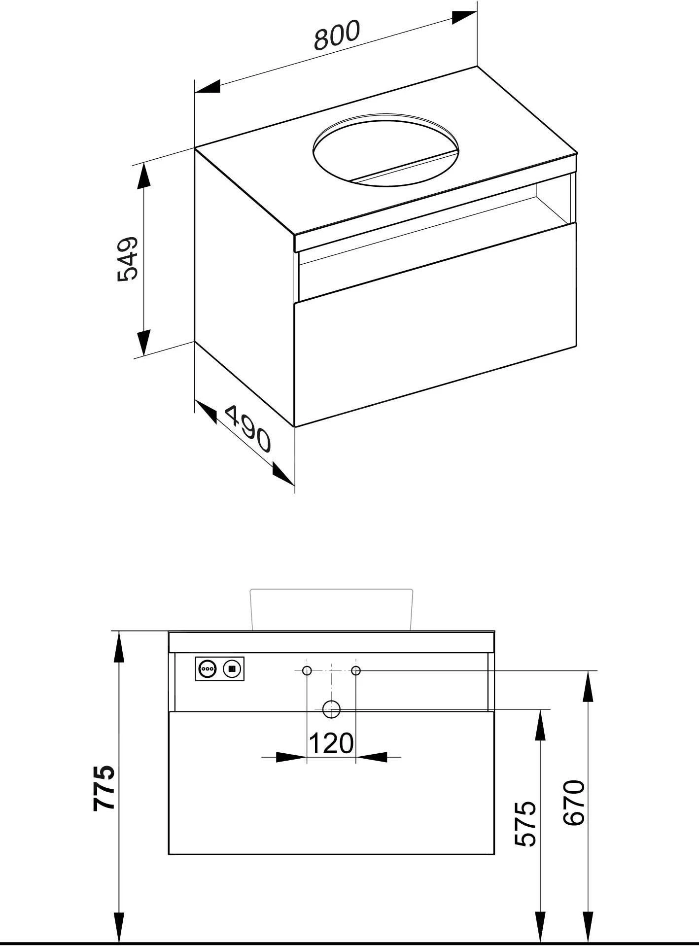 Unterschrank für rundes Waschbecken, inkl. Siphon