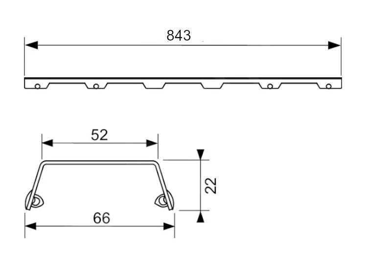 - Abmessungen: 843 x 66 x 52 mm